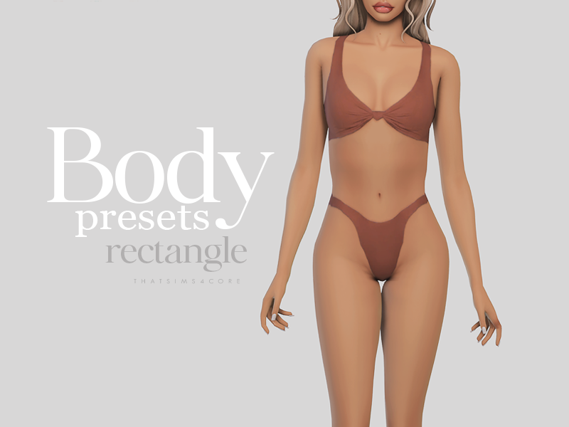 4 body presets, shapes include apple, pear, hourglass and rectangle. You will need to adjust with sliders for desired shape.