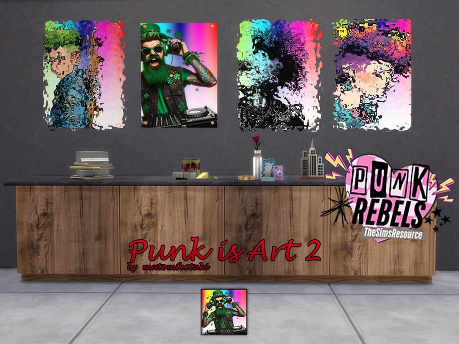 4 different punk poster motifs in this SET to spice up your room, created for Sims 4 by matomibotaki.