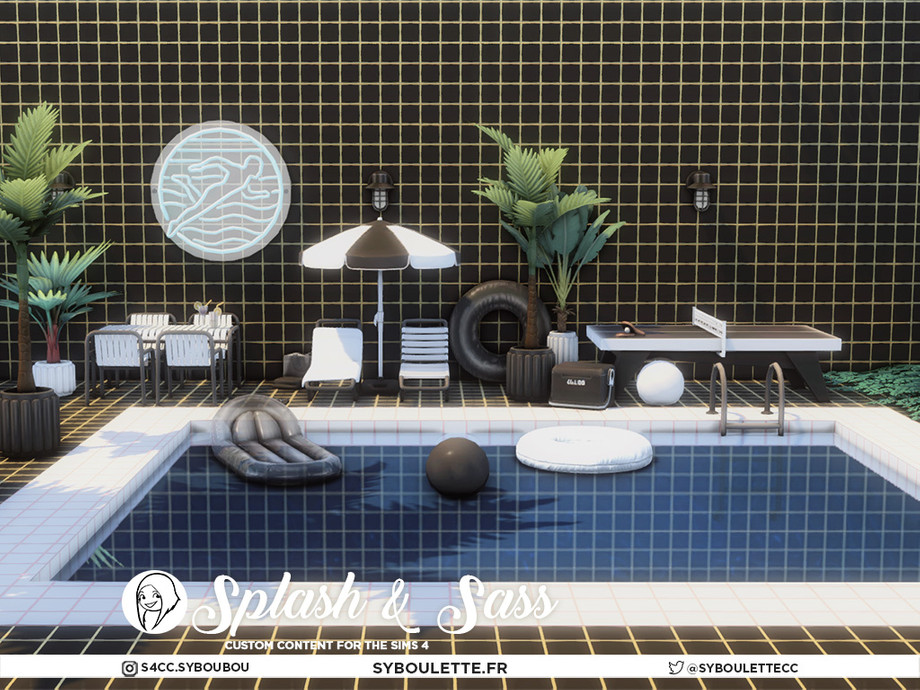 Turn up the heat with Splash & Sass, a bold and playful cc set for The Sims 4, inspired by pop colors and Sabrina Carpenter summer glam. Create the ultimate poolside hangout with wavy pool shapes, stylish ladders, and modern mosaic bottoms, all accented with neon decor.