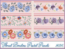 6 different floral border design with 8 pastel color swatches each. There are also matching plain pastel panels.