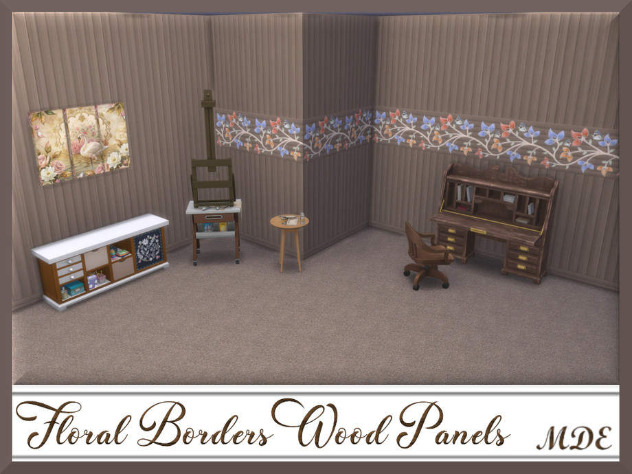 Sims 4 — Floral Borders Wood Panels by MDE — Add another dimension to your interior with the range of decorative floral