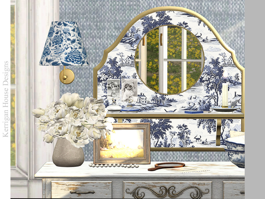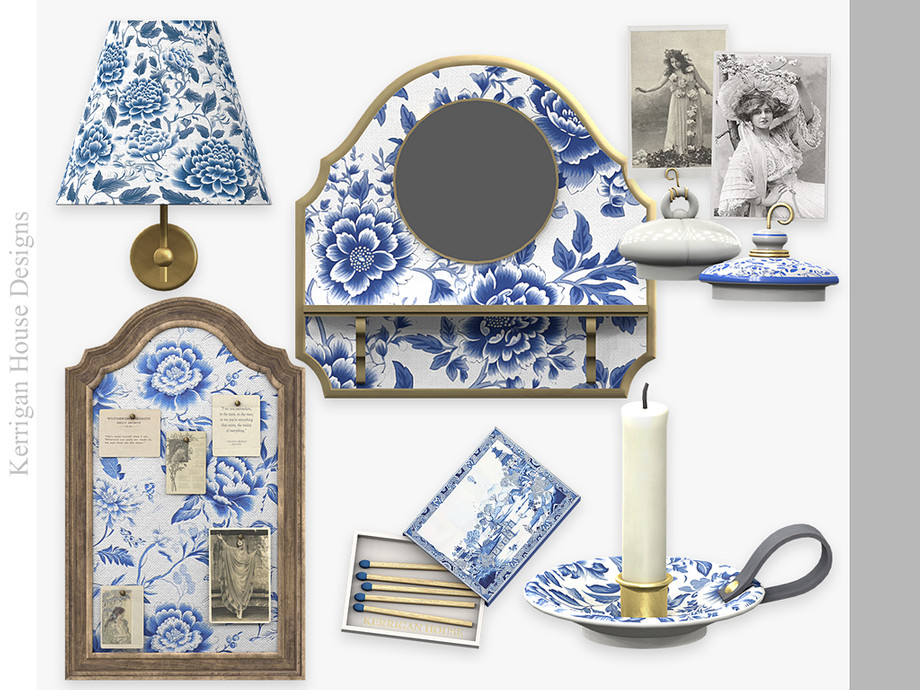 A set of of vintage vanity decor objects for Toile de Jouy collectors.