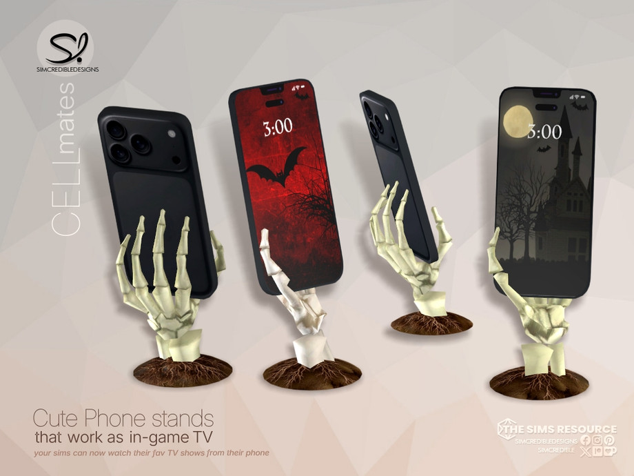 So, your sims will not be able to grab these phones. But you can place these stands in any side table near bed, or a coffee table in the living room, or any tiny apartment shelf. And your sims will be able to watch their favorite shows as they do on larger TVs.