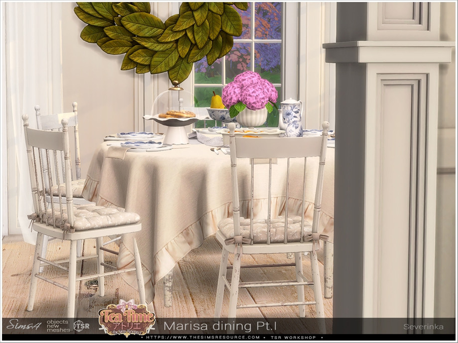 Sims 4 — Marisa dining Pt.1 by Severinka_ — Delicate beige and deep shades of green combined with natural wood and aged