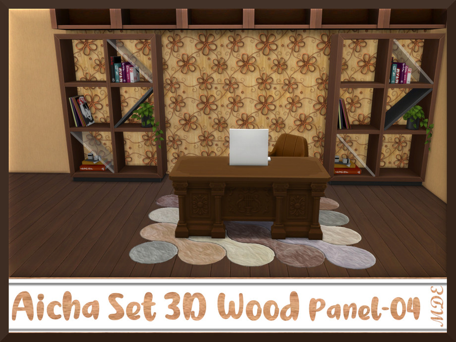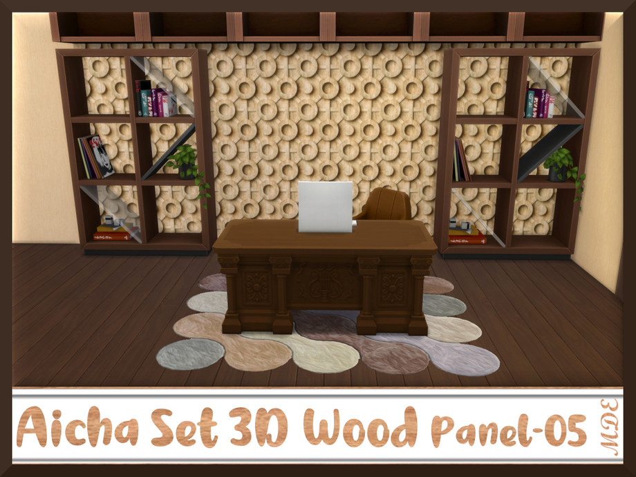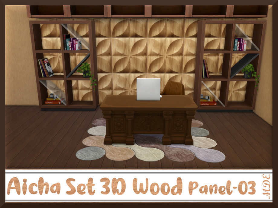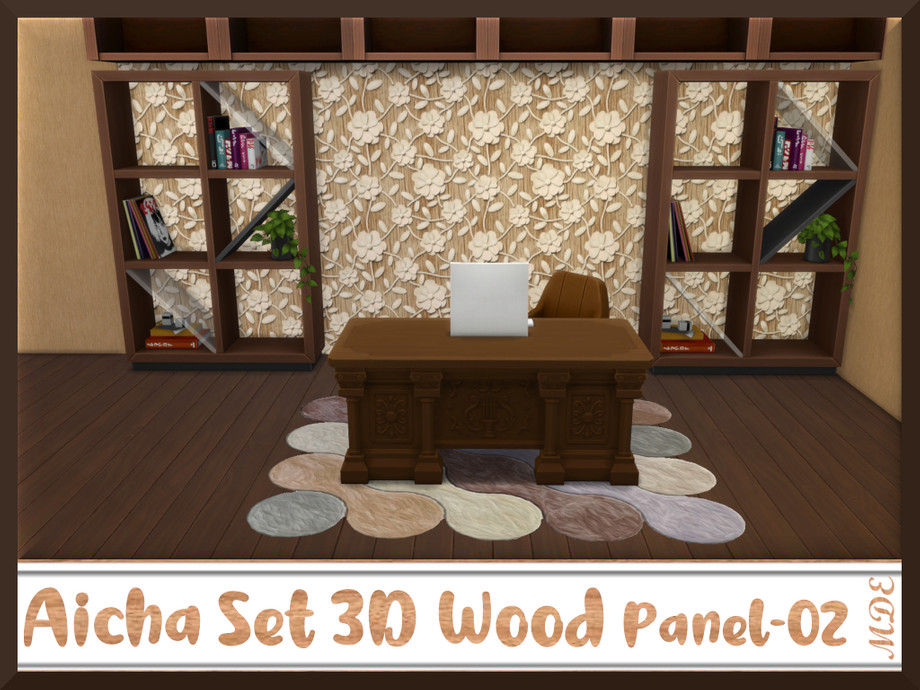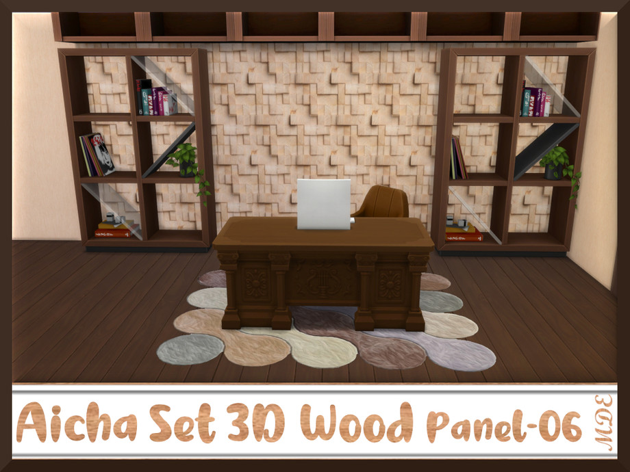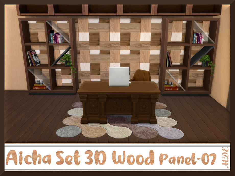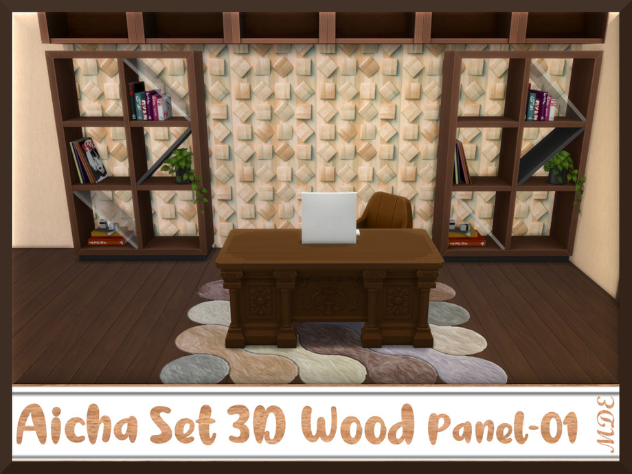 7 designs of 3D wood panel and 6 matching plain walls (2nd and 3rd designs have the same plain wall). In build mode the small icons are numbered i.e. 1 & 1 plain (as shown in the last image), so that you can easily find out which plain wall goes with which pattern.