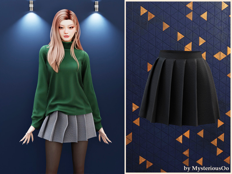 Sims 4 — Classic pleated mini skirt by MysteriousOo — Structured pleated mini skirt for versatile styling