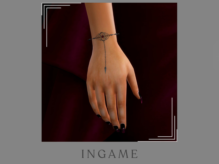 Sims 4 — Evil Queen Dangle Bracelet Right by Glitterberryfly — A right hand wrist bracelet with black metal and rubies
