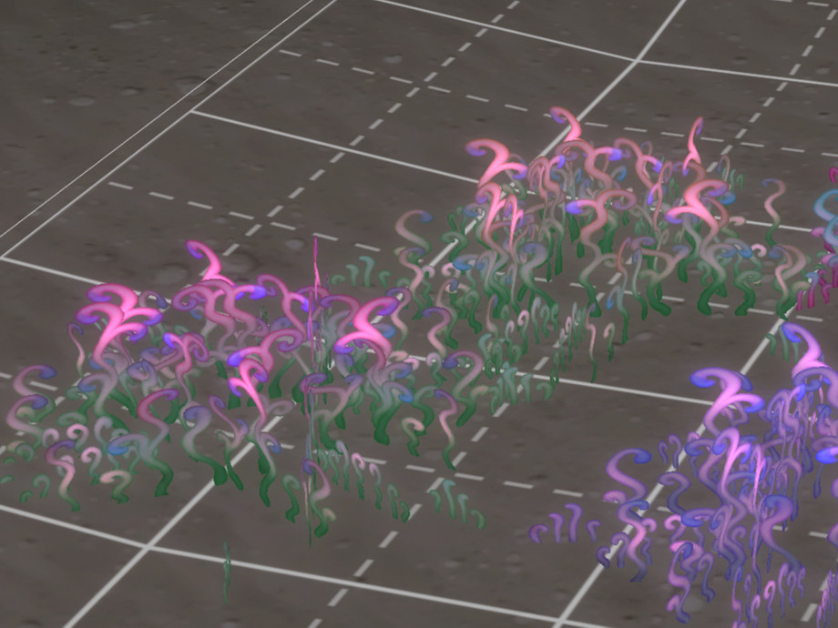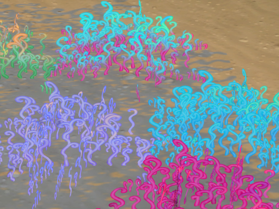 The Flare Lichen (Na'vi name: Pxayopinspxam) is a hardy mycelium that grows on damp ground in large, root linked colonies and changes color in reaction to environmental conditions and physical contact with other plants and creatures.
