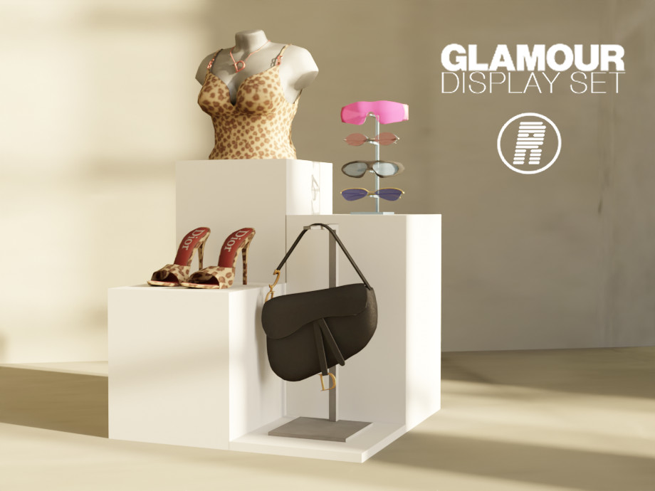 Glamour Display Set is a luxury inspired custom content collection designed to elevate your Sims interiors. This set is perfect for vanity areas closets boutiques and modern display spaces.