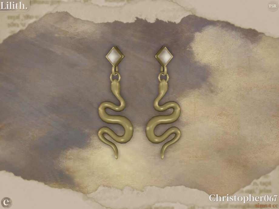 Sims 4 — Lilith Earrings by christopher0672 — This is a sickening pair of dangling curvy snake pendant earrings with a