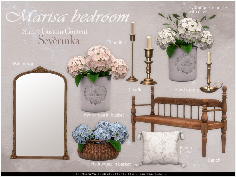 Sims 4 — Marisa bedroom Pt.2 by Severinka_ — A set of furniture and decor for bedroom decoration.