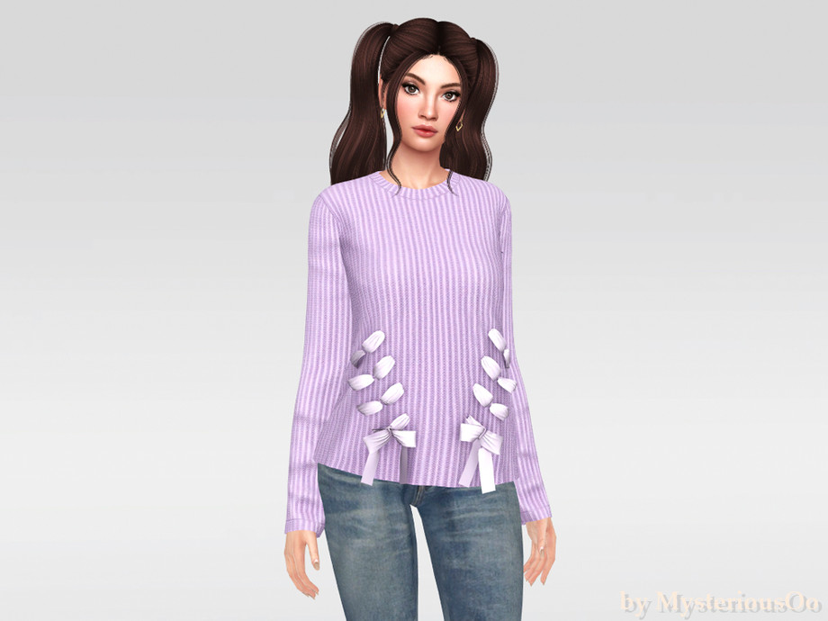 A soft ribbed knit sweater featuring elegant decorative bows for a feminine touch. The relaxed silhouette makes it perfect for everyday casual outfits or cozy layered looks. Easy to style with jeans, skirts, or tailored pants for versatile wardrobe combinations.
