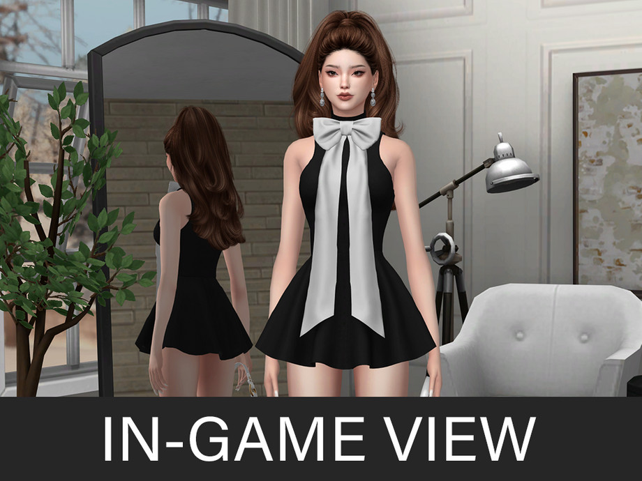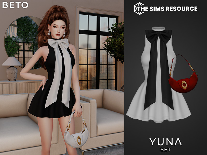 Sims 4 — Yuna (Set) by Beto_ae0 — Delicate dress with a bow and a matching elegant handbag - The handbag is located in