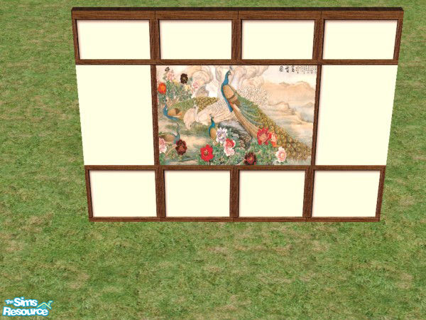 The set includes a 2-panel mural created from a oriental painting, set on cream colored poured walls enclosed in dark wood beams. You can get the plain cream colored wall with dark wood that goes with this set from the 'Koi' mural.
