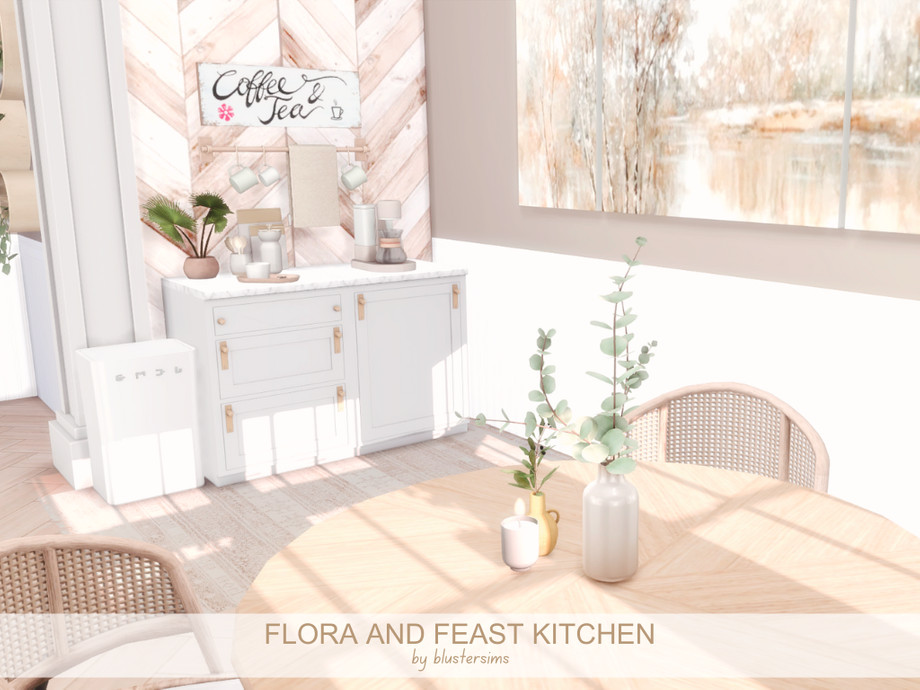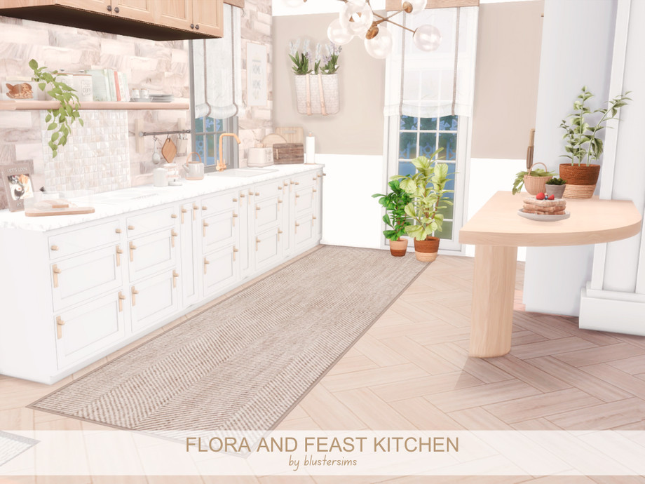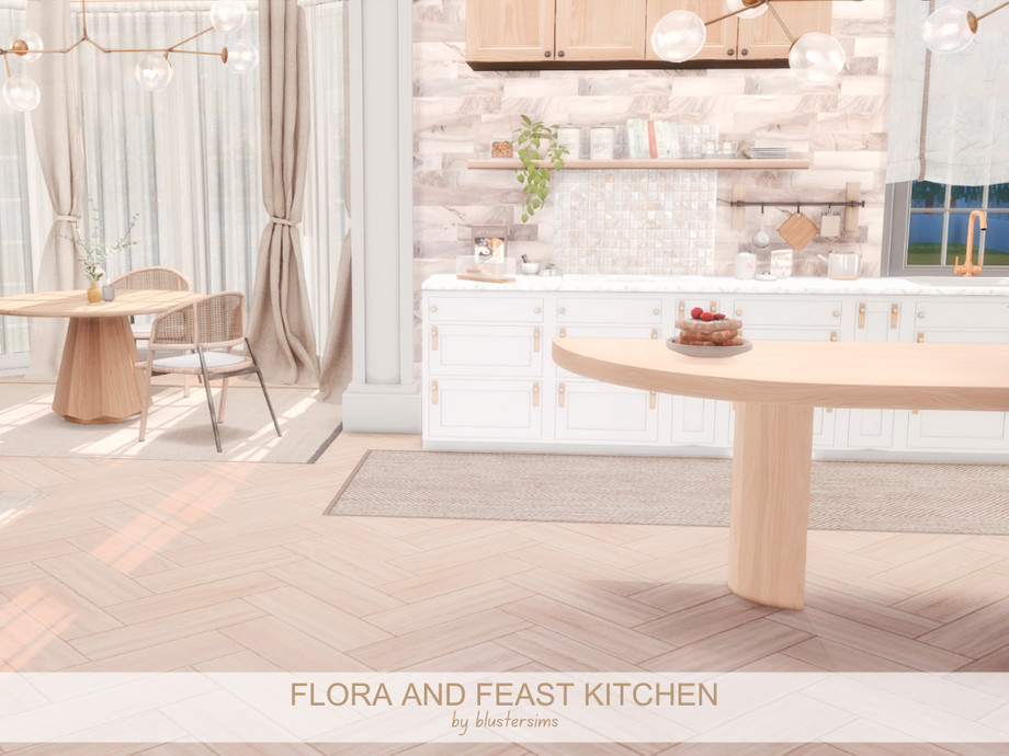 Sims 4 — Flora and Feast Kitchen by BlusterSims — The Flora and Feast Kitchen is a bright, airy space with white