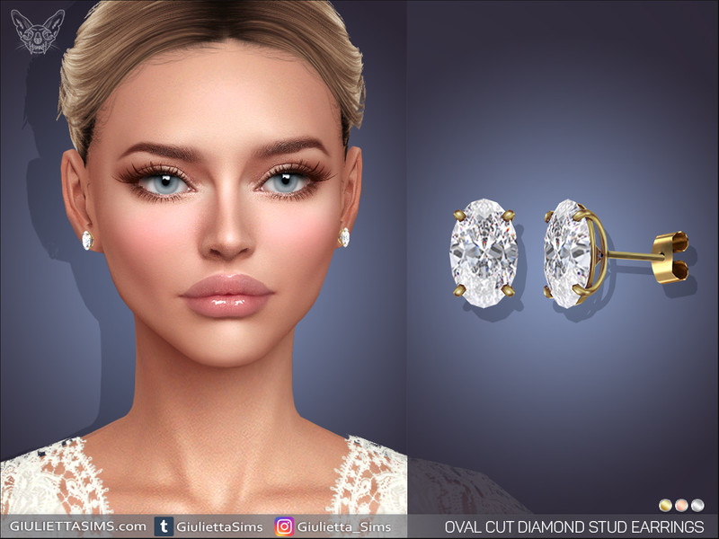 Oval Cut Diamond Stud Earrings in 3 colors of metal: yellow gold, white gold, rose gold.