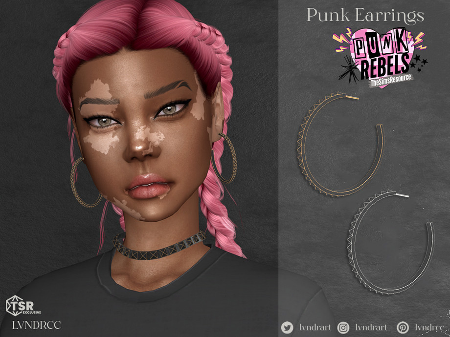Sims 4 — (PUNK REBELS) Punk Earrings by LVNDRCC — Open hoops with pyramid stud design, in painted silver and gold.