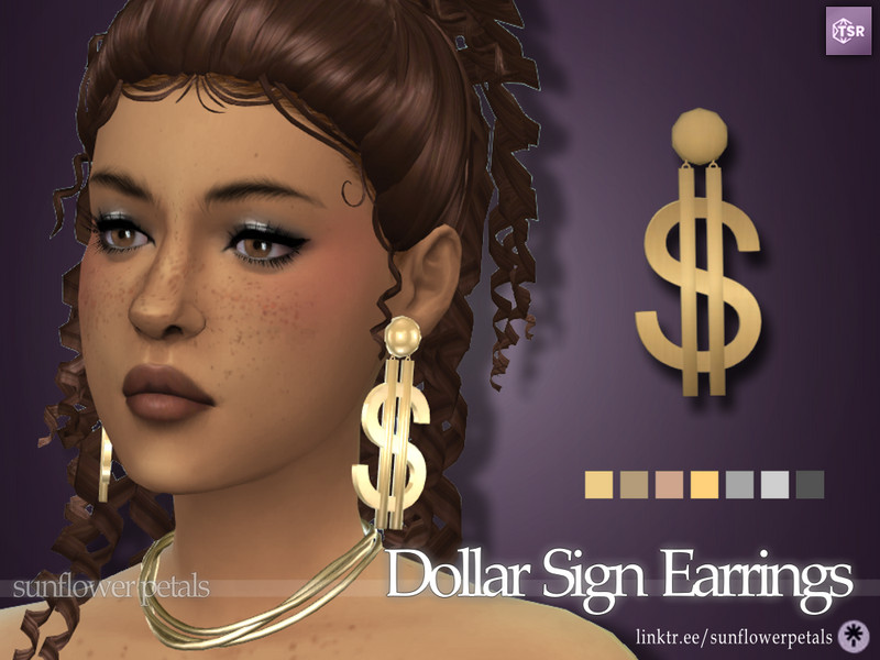 A pair of large, dangle earrings in the shape of dollar signs. Comes in 7 metal colors.