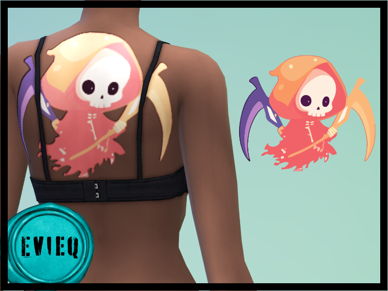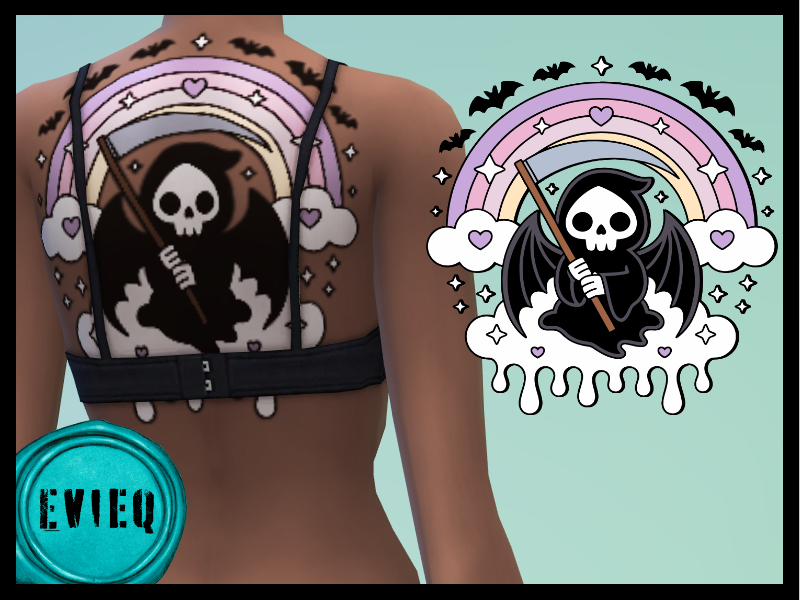 A recolor of an upper back Base Game tattoo with 5 swatches. Make a statement for your Sim.