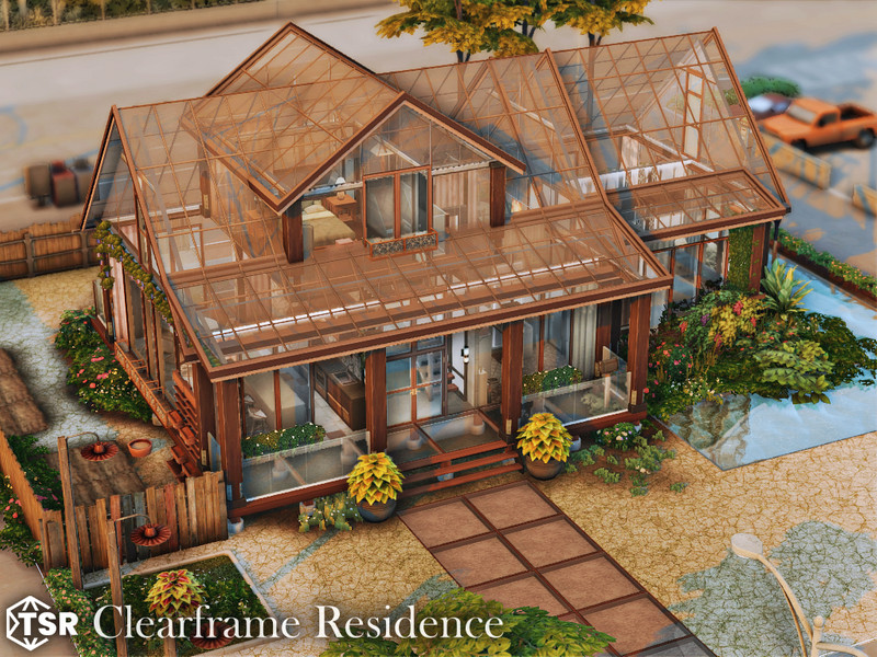 Sims 4 — Clearframe Residence l noCC by simZmora — A conceptual glass house that reinterprets a traditional home through