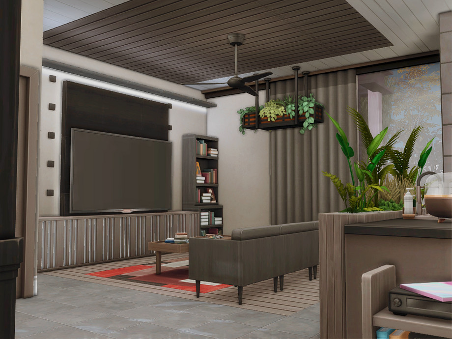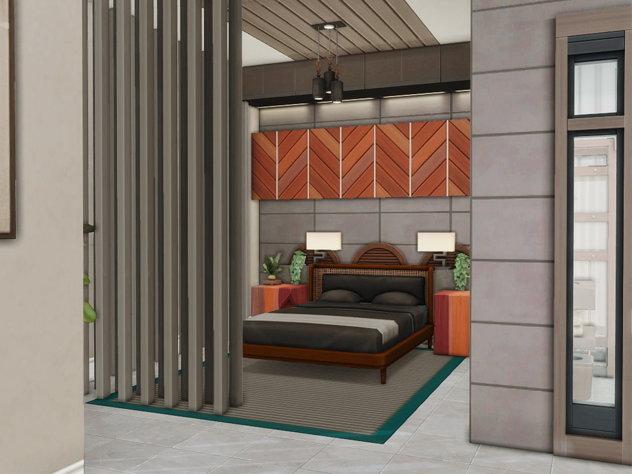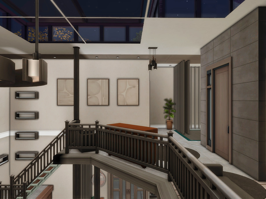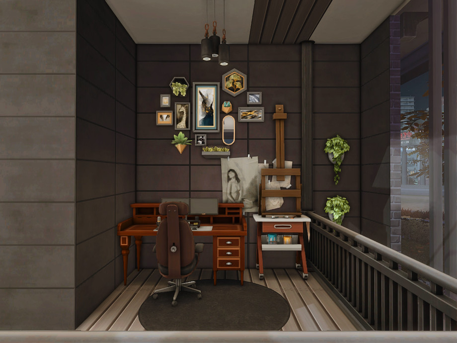 A striking two-level industrial apartment designed as a private urban hideaway for a single Sim. This loft-style home features one bedroom, one bathroom, and an open-plan living space wrapped in concrete, steel, and glass. Raw materials, exposed structure, and moody lighting create a bold, cave-like atmosphere with a modern edge. Perfect for solitary Sims, creatives, or storytellers looking for a dark, stylish retreat in the city.