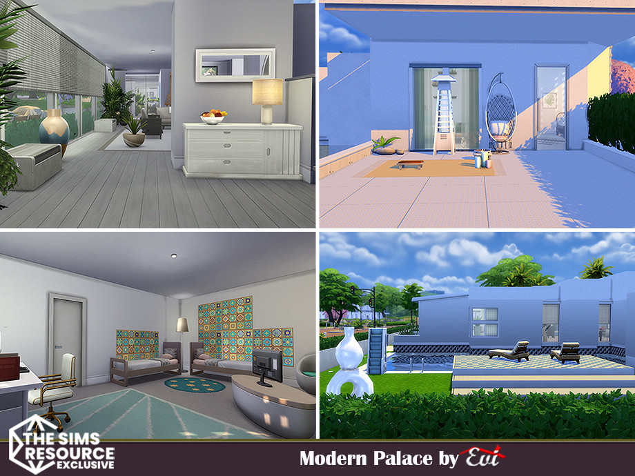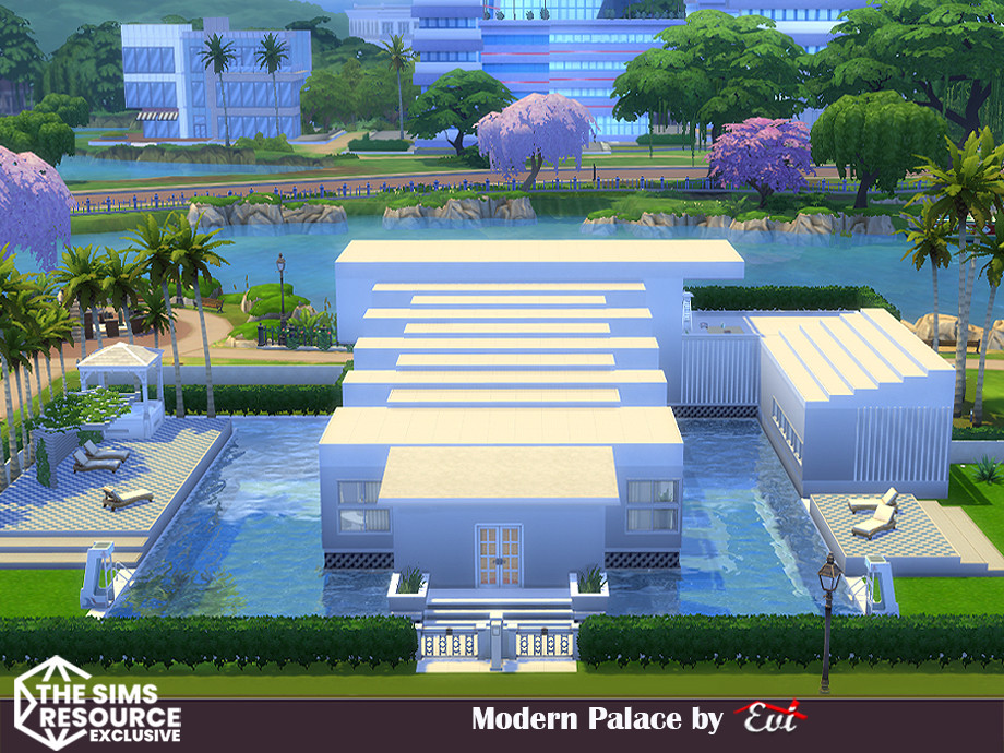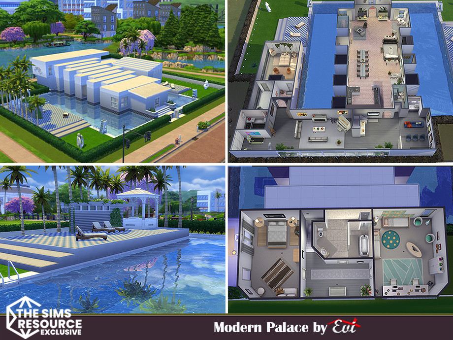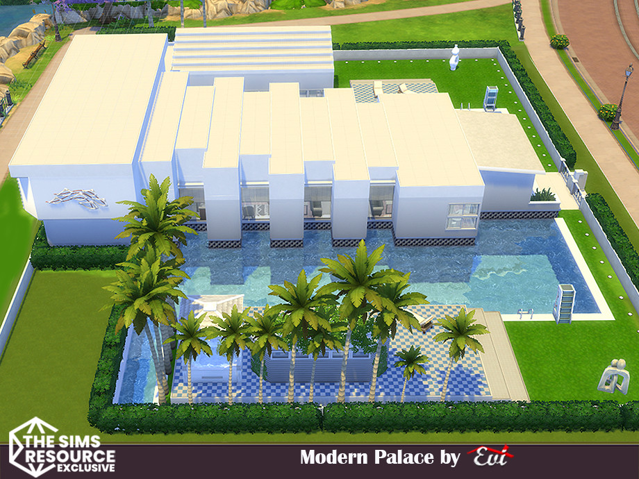 Sims 4 — Modern Palace _No CC by evi — A three bedroom modern house with pools.