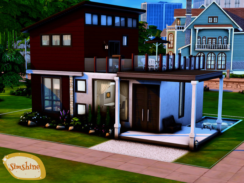 Two bedroom, two bathroom house on a 20x15 lot originally built in Newcrest. This two story house has a small pool and a large roof deck area. Nicely furnished, this home will cost a sim 33,162.