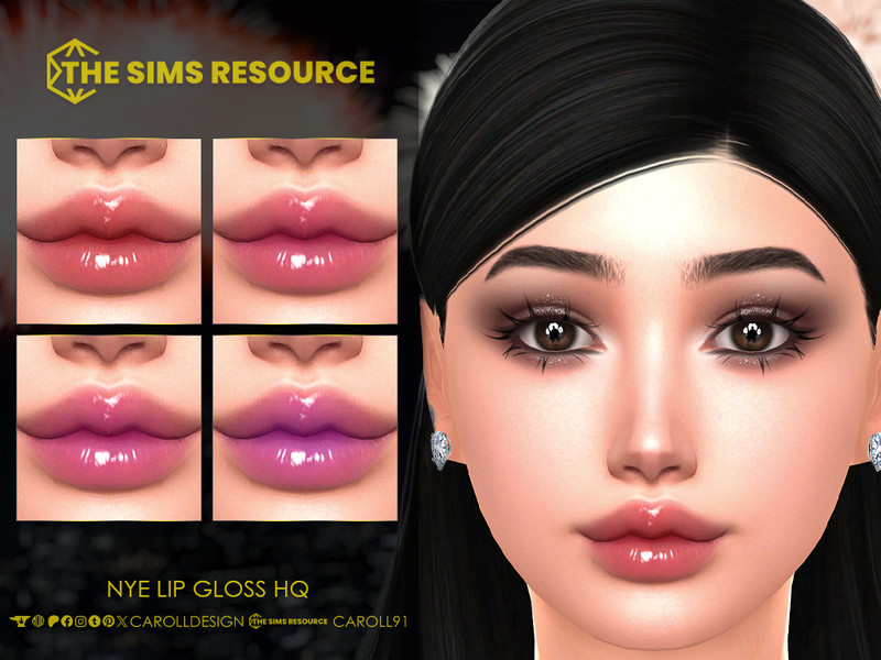 A 4-swatch jelly-style lip gloss in the shades of red, pink and purple. The gloss is suited from Teens to Elders and all occults apart from werewolves. Created only for females. HQ mod and EA sliders compatible.