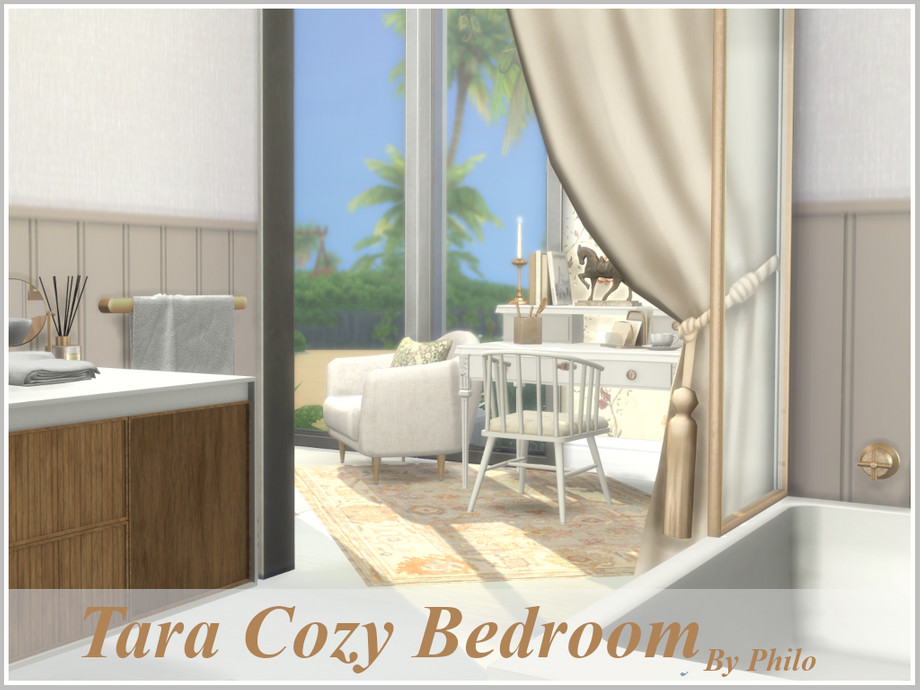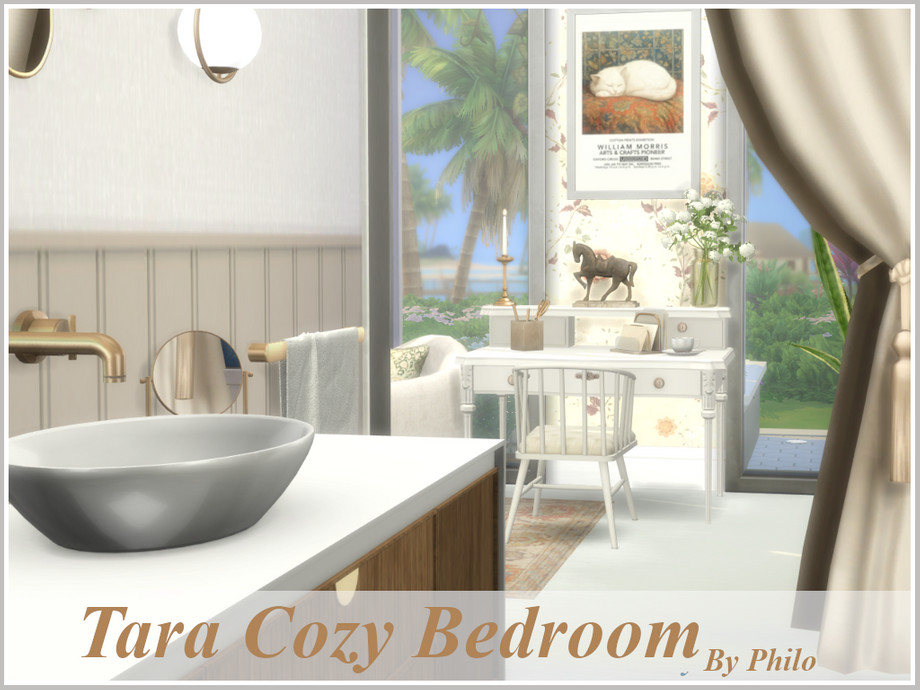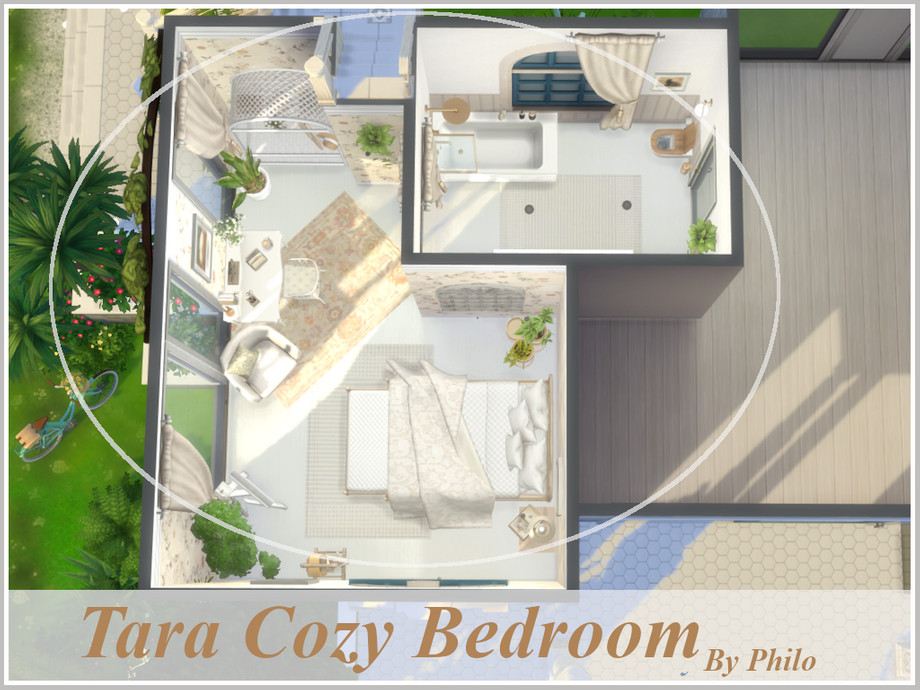 A romantic boho bedroom for your sims or their guests. Because it's en-suite, it comes also with a bathroom.