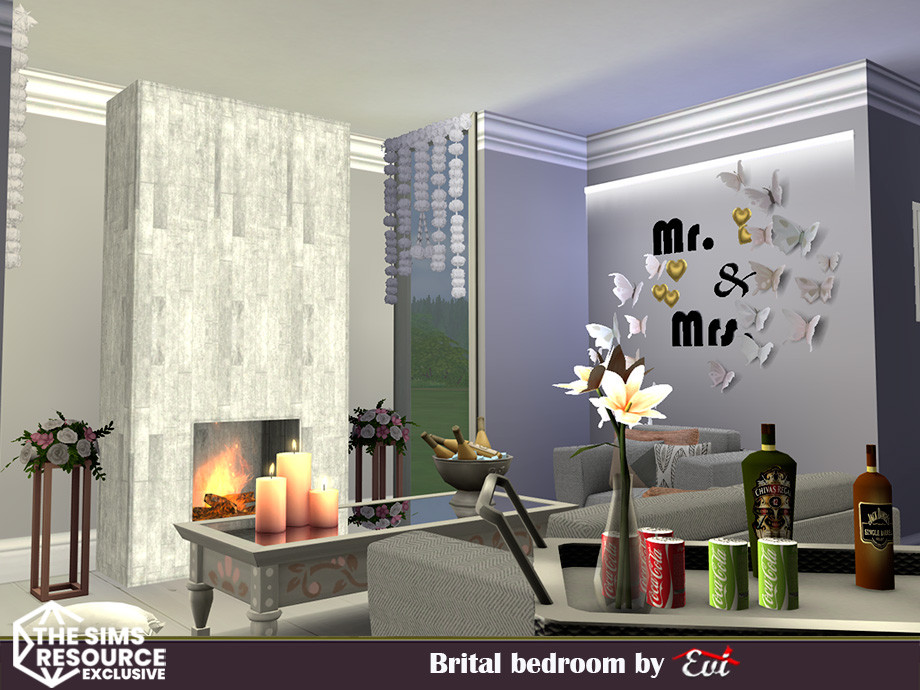 White fabrics, lace, mirrors, an elegant and warm fireplace, drinks and flowers consists this bridal bedroom.