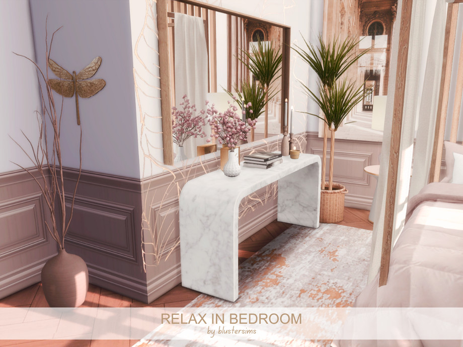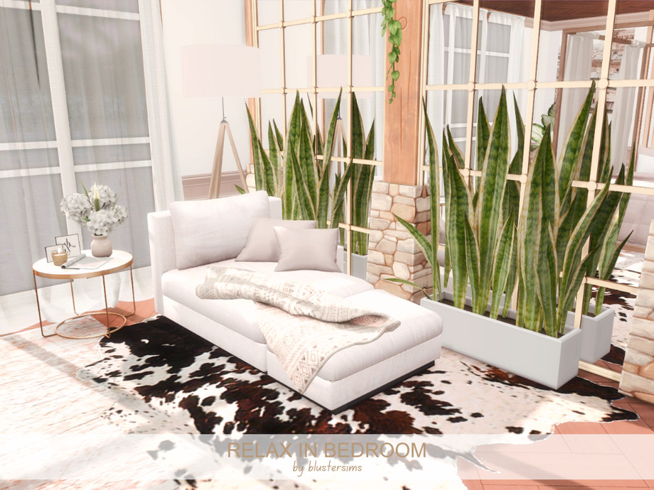 Relax In Bedroom is a serene, sunlit space blending soft blush tones, natural wood, and lush greenery to create a calm, airy retreat designed for effortless relaxation.