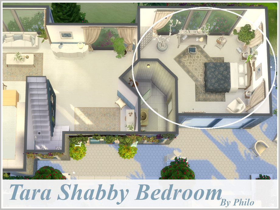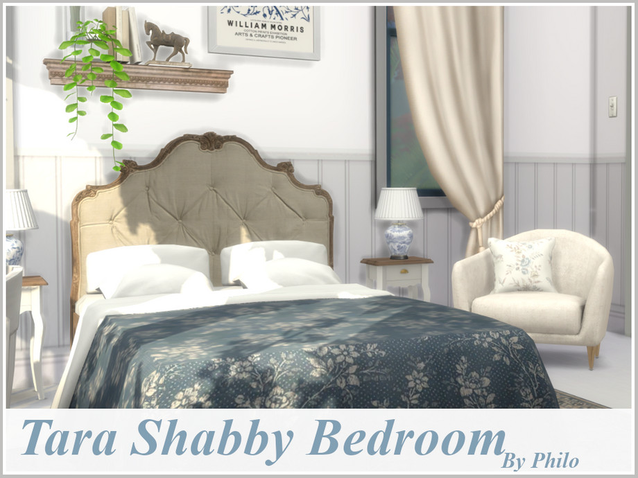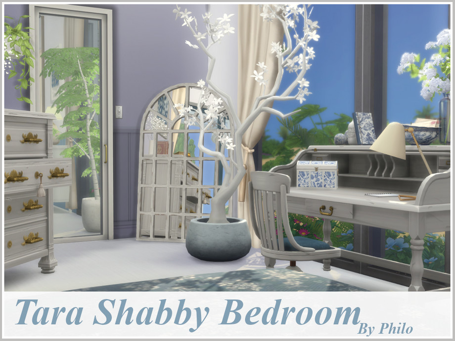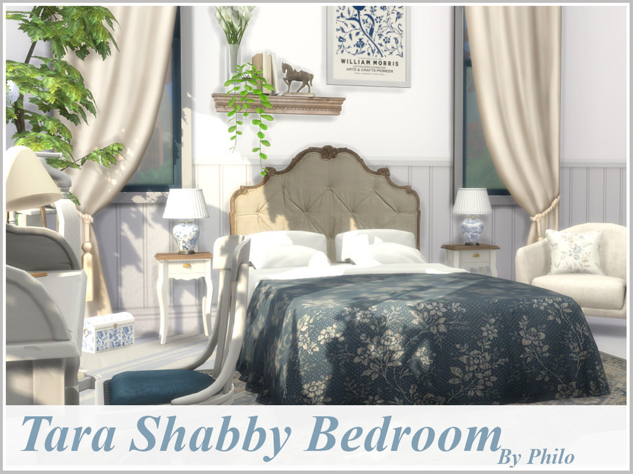 Elegant shabby blue and white bedroom for romantic sims.