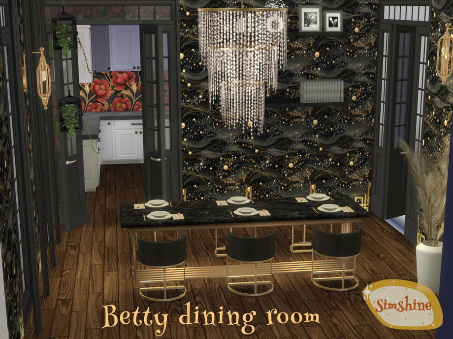 An art deco-styled dining room with plenty of ambiance. Make sure you download all the required items!