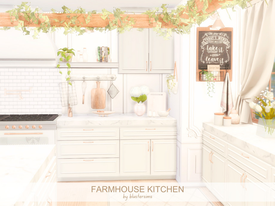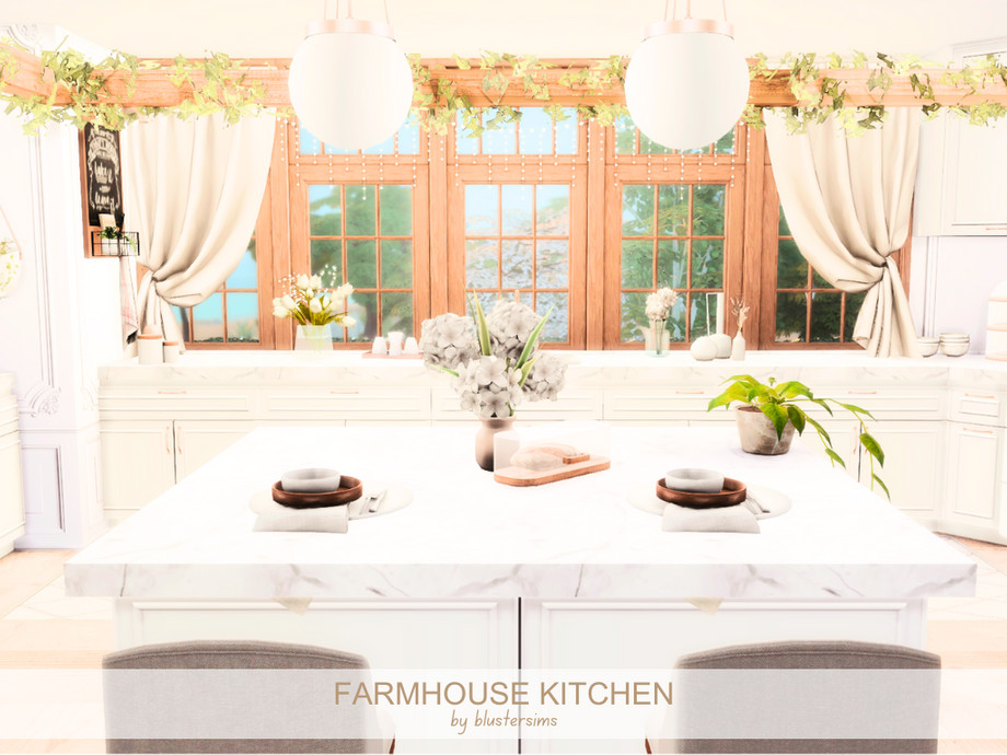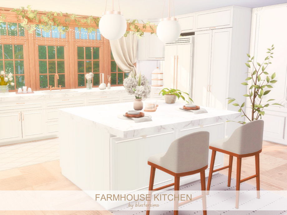 Farmhouse kitchen with a beautiful kitchen island and plenty of space to cook delicious dishes.
