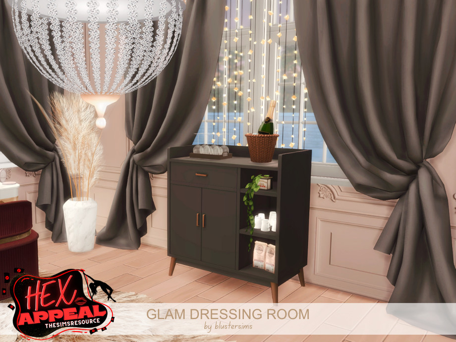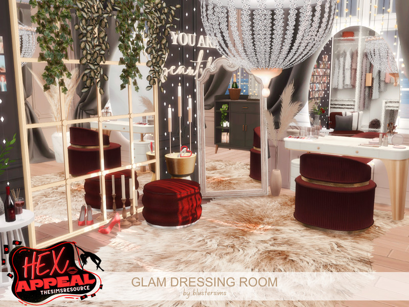 This Glamorous Dressing Room comes with a vanity, mirrors, a small sitting space and a little bar.