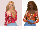 Sims 4 — Nonna Top by Dissia — Long sleeves square cleavage retro flowers squares pattern top