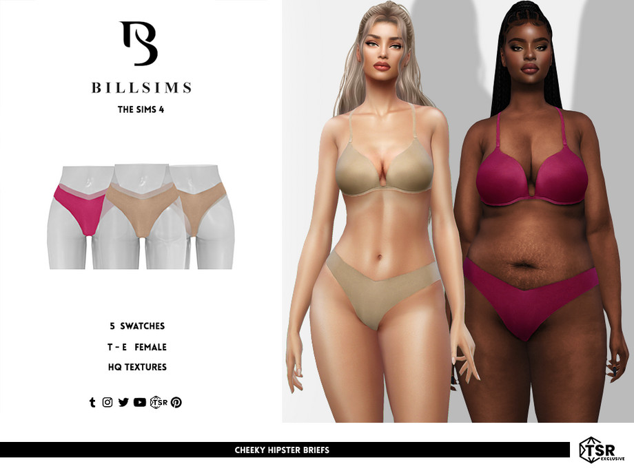 This set includes a soft cup bra and a pair of briefs in a hipster, cheeky style! - Female, Teen-Elder. - HQ Textures. - HQ Mod Compatible. - Sleepwear. - 5 Swatches. - CAS Thumbnails Included.