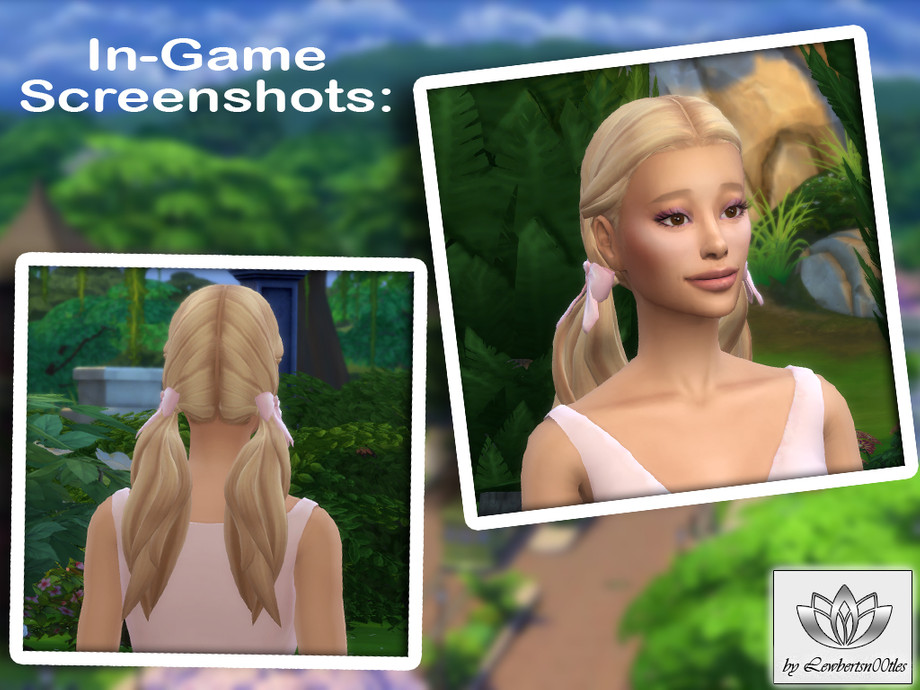 A long and wavy double ponytail hairstyle, inspired by one of Glinda's hairstyles in the movie "Wicked". Maxis Match EA Swatches + 6 custom swatches Teen to Elder Disabled for random Custom thumbnail Female tags Base Game Compatible Hat compatible Bow accessory can be found in the hat category