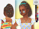 A fun, braided, up-do hairstyle with thick twists in a ponytail. Download includes colourful rings accessory, found in the hats category.