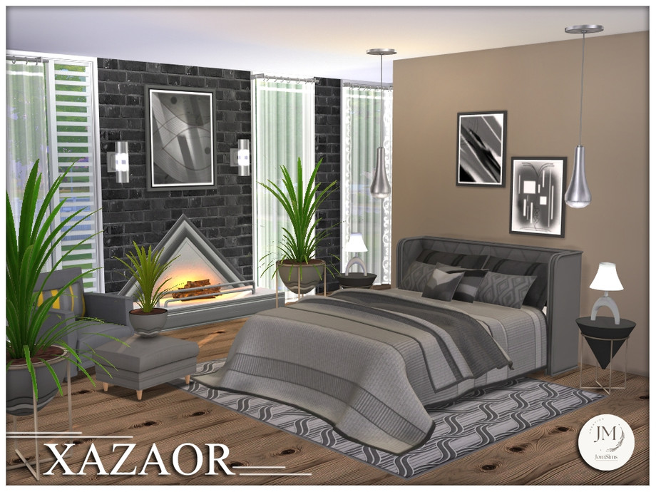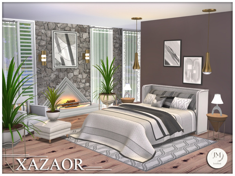 Sims 4 — Xazaor bedroom set by jomsims — Xazaor is a modern and elegant bedroom set for your Sims.