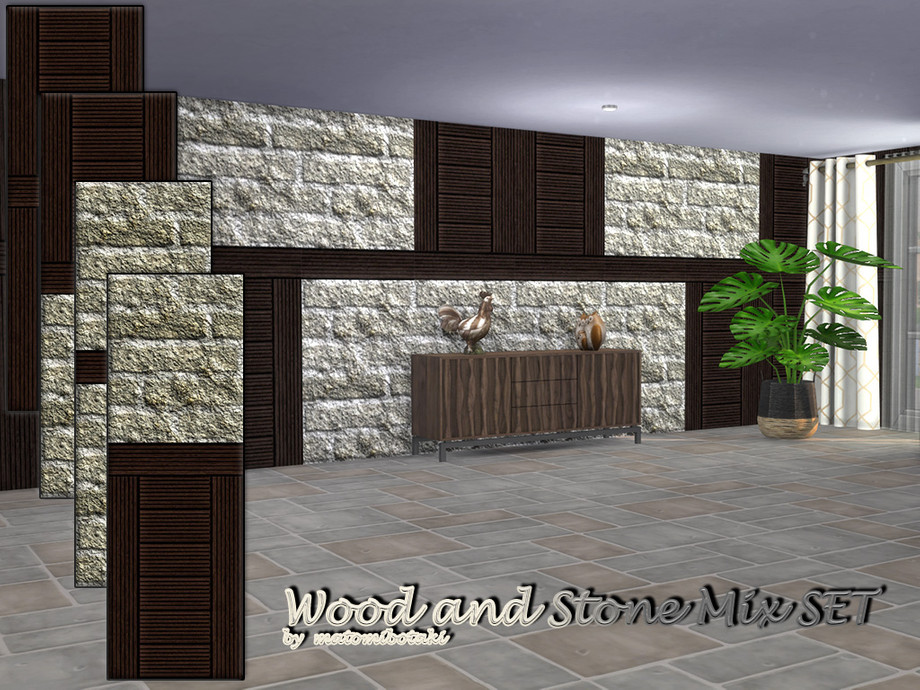 Wooden cladding and rough brickwork in the upper part, 4 different combinable variations in 3 wall heights, each with custom thumbanil, created for Sims 4 by matomibotaki.