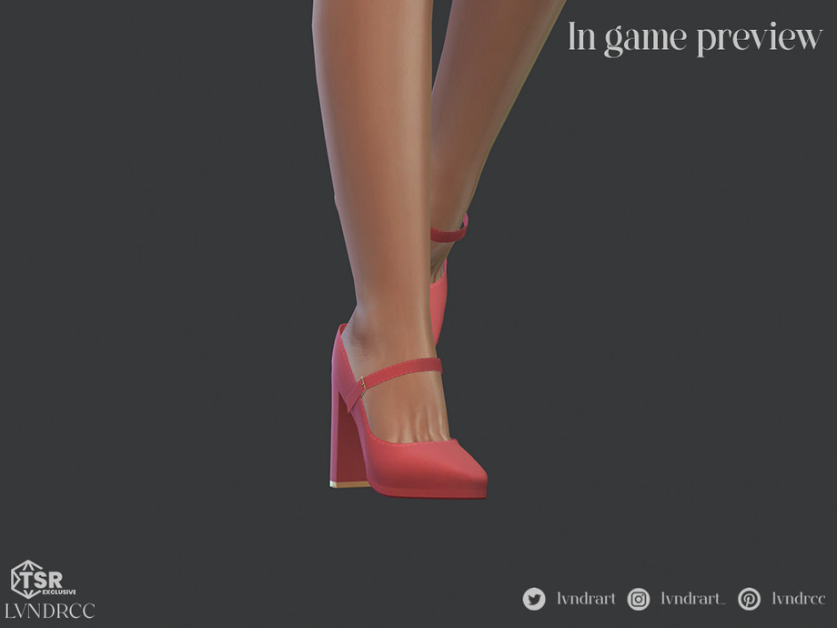 Sims 4 — Modern Mary Jane Strap Shoes by LVNDRCC — Almond toe Mary Jane heels made from a matte leather. On a wide,