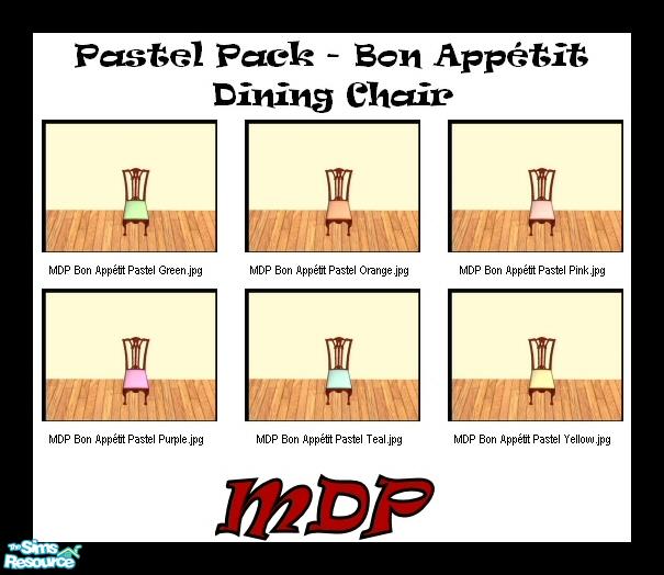 Sims 2 — MDP Pastel Pack Bon Appetit Chairs by MelandStv — There are 6 colourful upholsteries in this set. Part of my