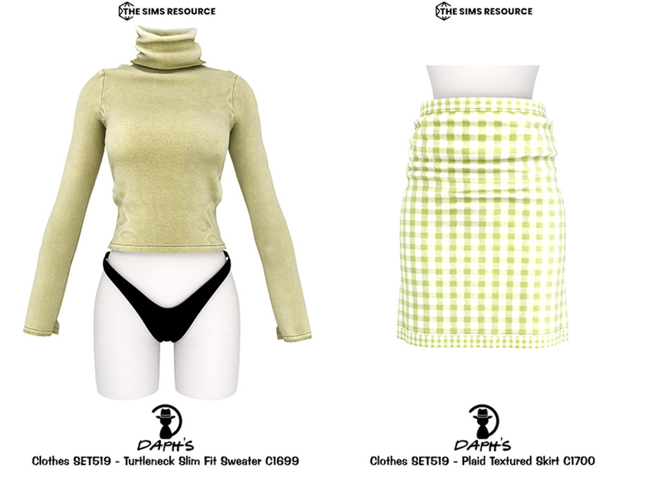 Sims 4 — CLOTHES SET519 by Daph's — A stylish two-piece outfit set featuring a slim fit turtleneck sweater and a plaid
