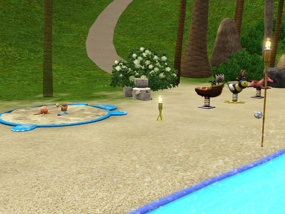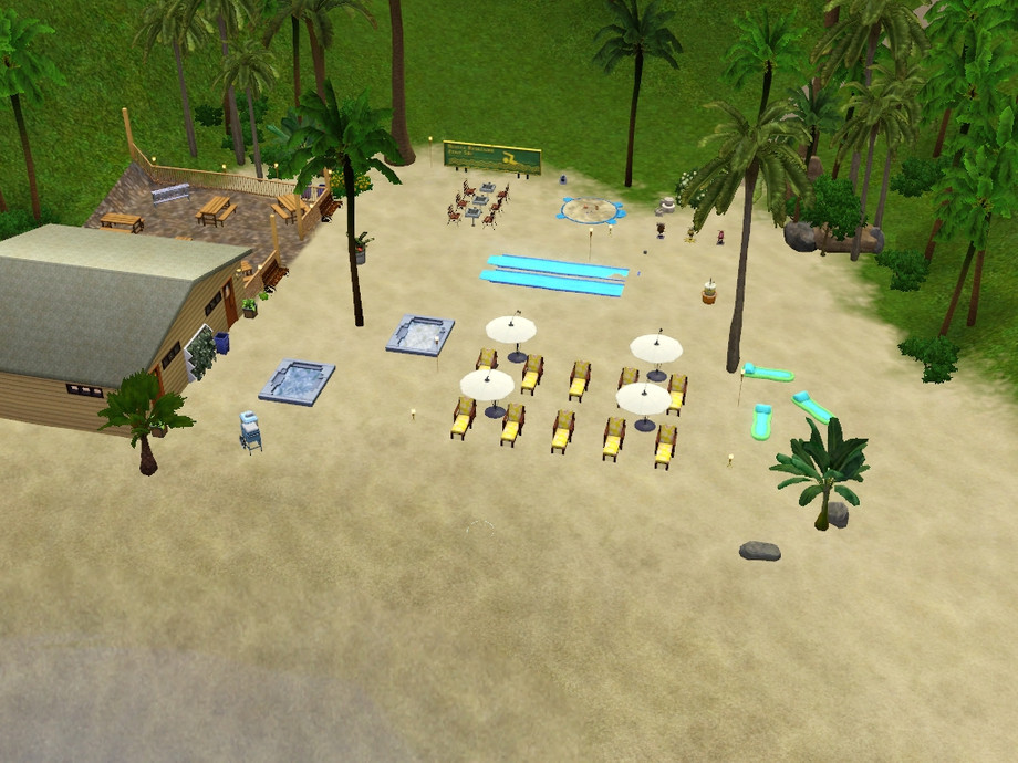 Sunset Beach is large beach lot where your sims can relax and have fun! They can also have barbeques and other festive things. Have an ice-cream and sit down to watch the sea and seagulls.