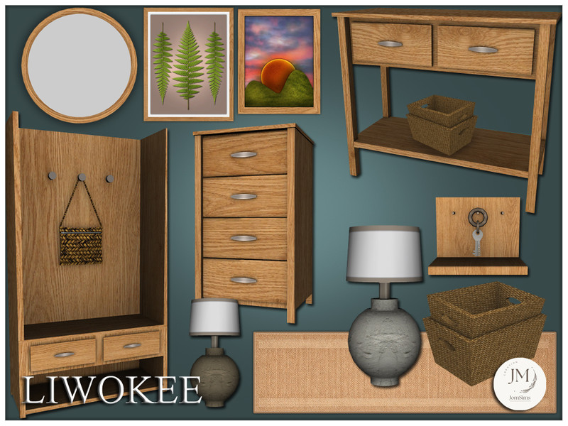 Liwokee is a warm and modern entryway set for your Sims. It includes 10 matching objects made of elegant wood for a natural atmosphere. Perfect to create a welcoming and harmonious entrance in any home. happy simming i use my set in game i use bb.moveobject to creat my screen paintings by me i creat my set with Tsr Workshop