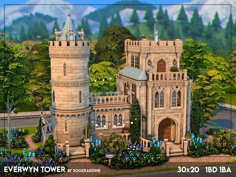 Sims 4 — Everwyn Tower (NO CC) by xogerardine — This is a cute small one bedroom, one bathroom castle built to celebrate
