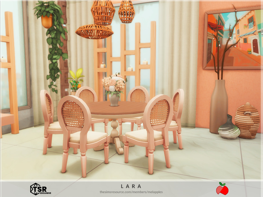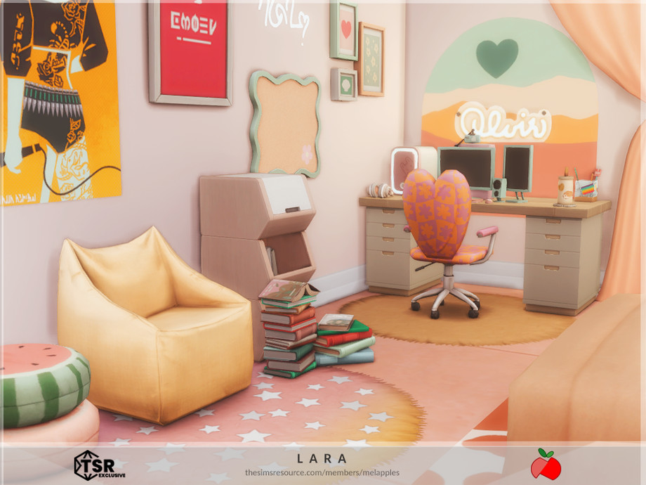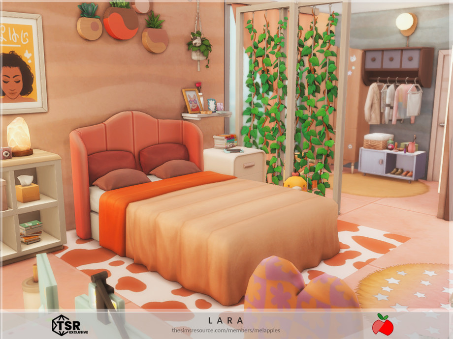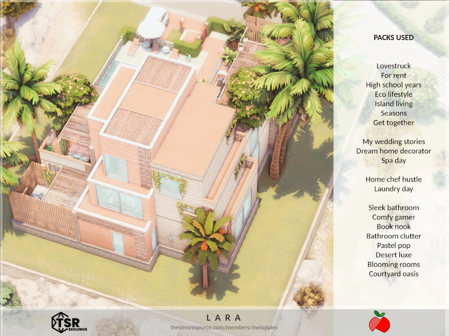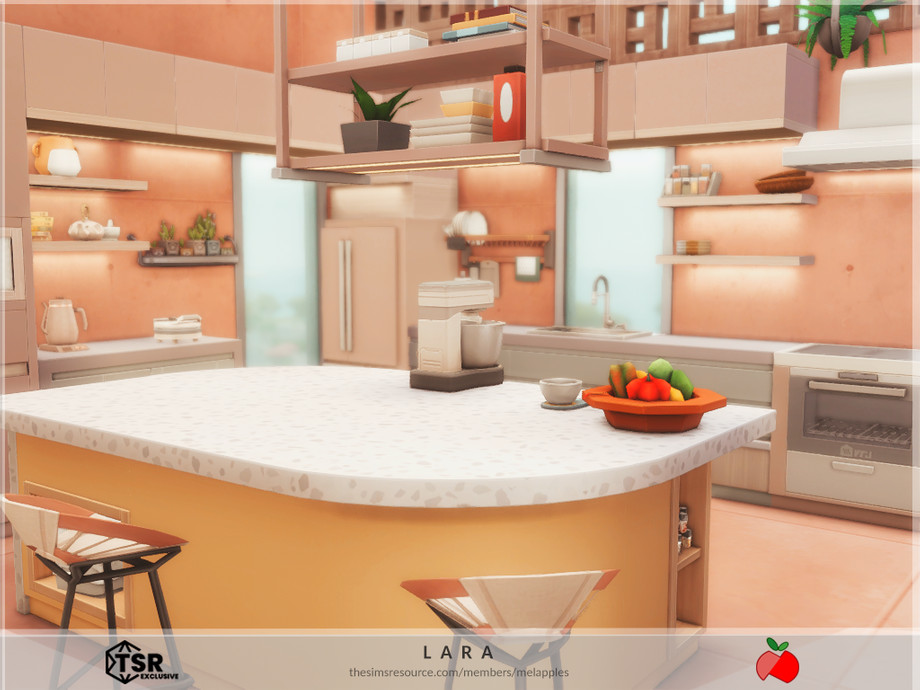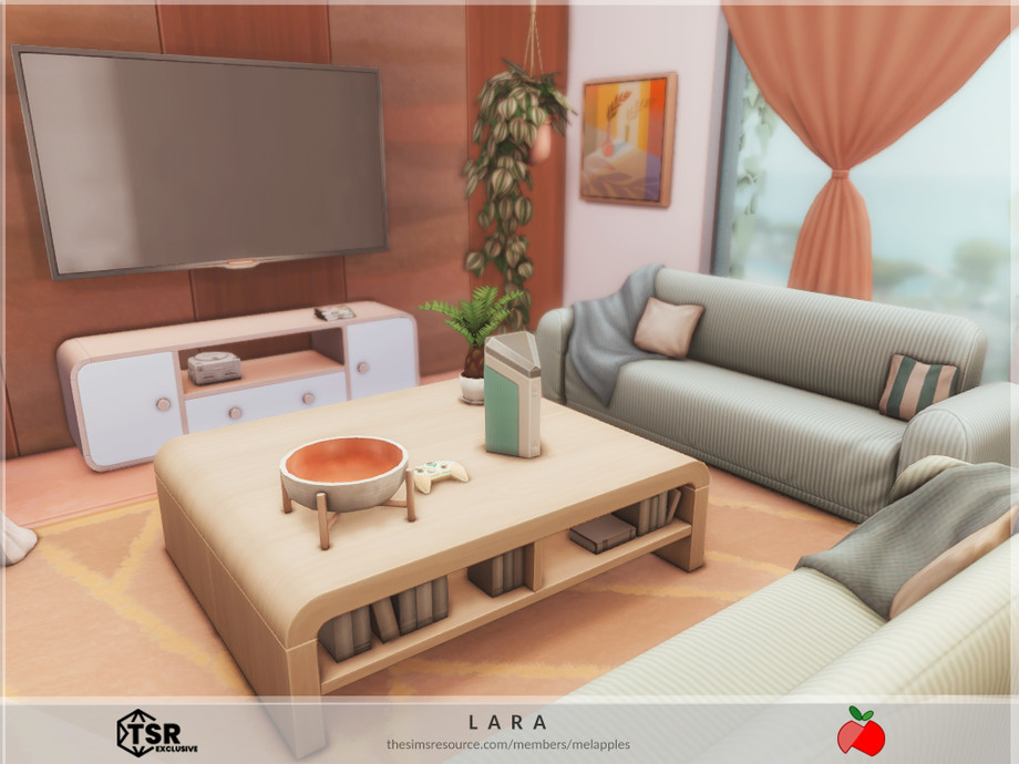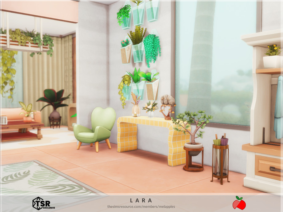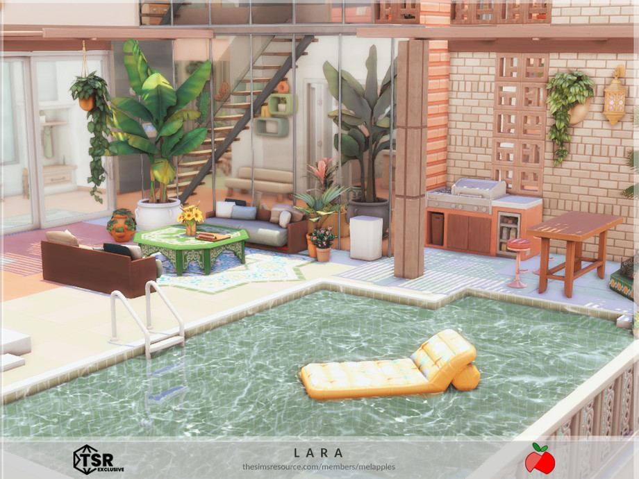 Sims 4 — Lara - no cc by melapples — a 2 bedroom modern house decorated with bright colors. 1st floor: patio, living