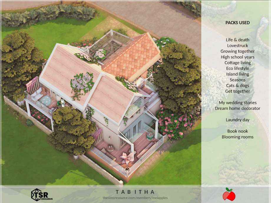 Sims 4 — Tabitha - no cc by melapples — a cute, floral home for a small household with a pet.
