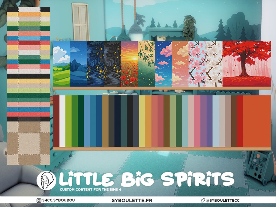 Little Big Spirits is a joyful kid bedroom CC set inspired by the soft magic and wonder of the Ghibli universe, made for infants, toddlers, and kids alike. Bursting with colorful, happy swatches (but also a dramatic black emo one and a sad beige option), this collection lets every little Sim express their own tiny personality.